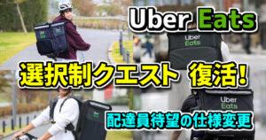 正確にはUberEatsから去ってしまった配達員を取り戻すためであり、減少してしまった(もしくは他社に移行してしまった)配達員の奪還が選択制クエスト導入の最大の目的かと。