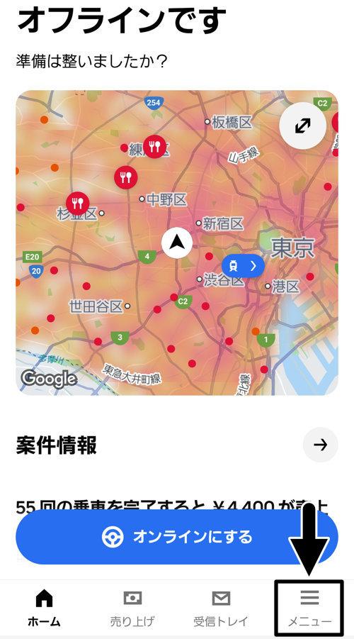 まずUberDriverアプリを起動します。